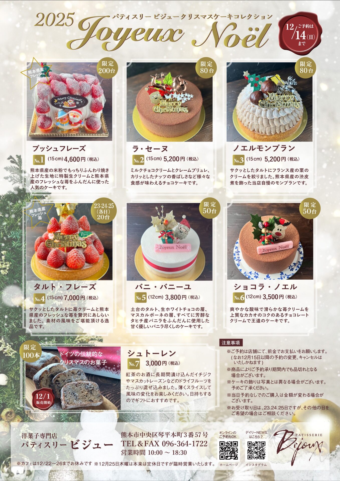 当店でクリスマスケーキのご予約、お支払いを頂いた