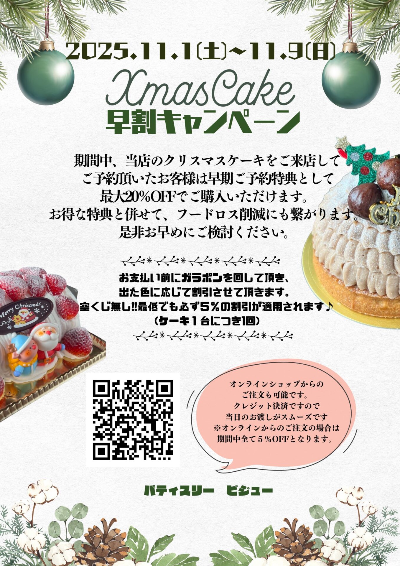 今年もクリスマスケーキの早割イベントを開催致します。
