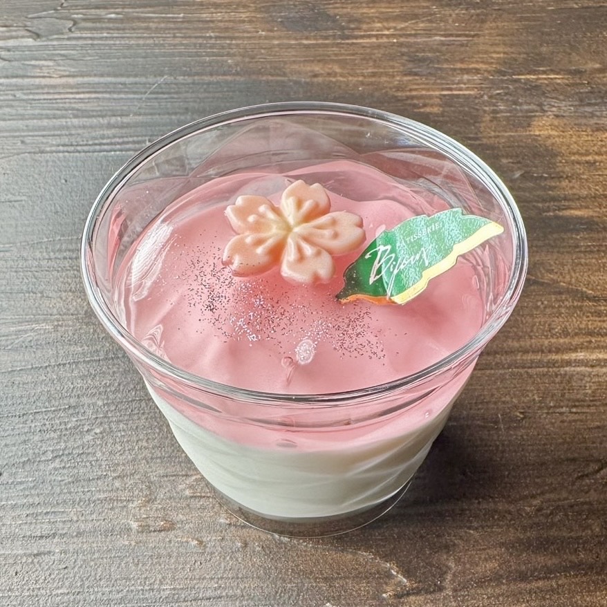 つるんとしたパンナコッタに桜風味のゼリーをかけた和と洋のマリアージュ♪